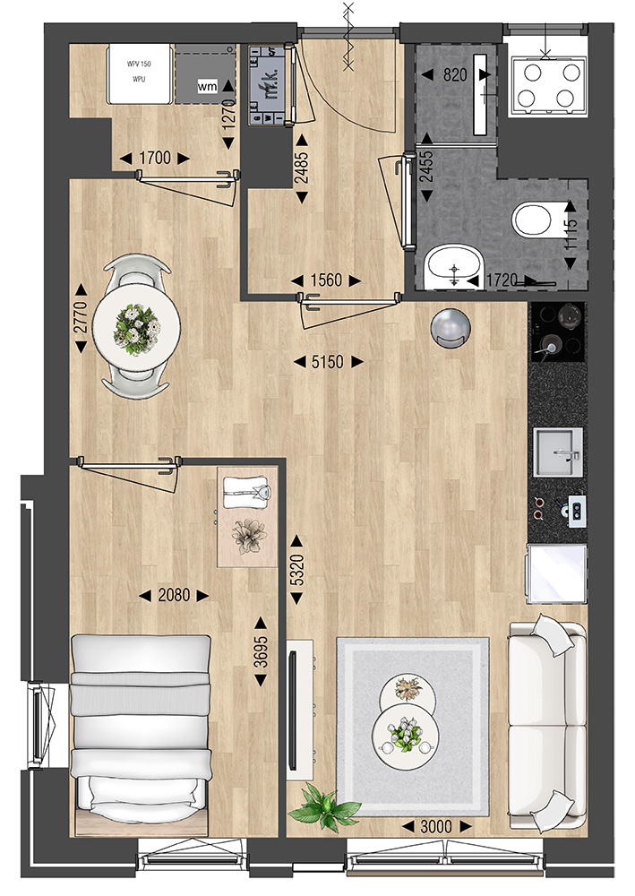 Bij de appartementen met bouwnummer 21, 41, 61, 81 en 101 is extra ruimte van 4 m² voorzien, ideaal voor het positioneren van een moderne keuken. Voor de wasmachine is een aparte, praktische berging geïntegreerd, waardoor het interieur overzichtelijk en rustig blijft.