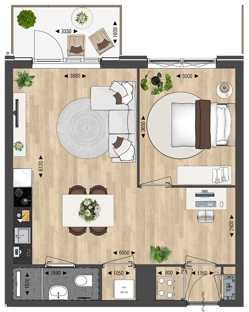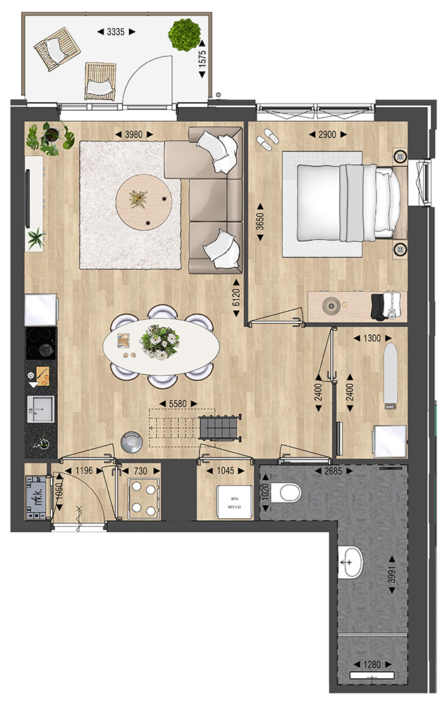 Het type 3 appartement combineert een praktische indeling met een comfortabele woonervaring, perfect voor modern en zorgeloos wonen.